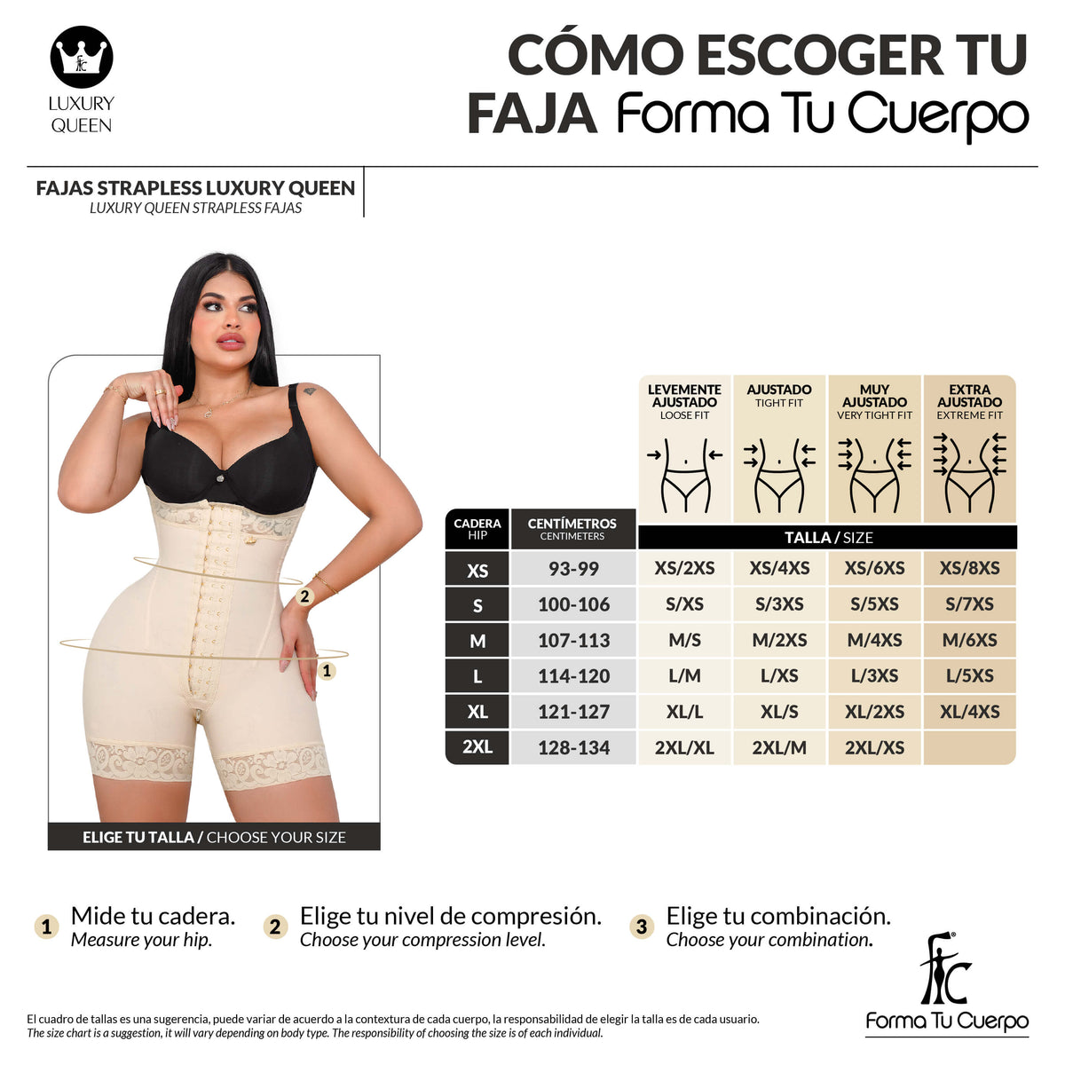 Armoniza tus curvas prominentes acompañado de tu mejor escote con esta faja de lujo, perfecta para una mujer elegante como tú. Al llevarla, puedes escoger y mezclar tus tallas tanto para la cintura como para la cadera, haciendo resaltar tu cuerpo reloj de arena de una manera espectacular y personalizada. Con su triple refuerzo abdominal, tu cintura se verá mucho más pequeña, haciéndote sentir como toda una reina. Cuenta con unos elegantes broches ultra resistentes de 3 posiciones, bañados en oro, para que los ajustes a tu zona abdominal como mejor te sientas.